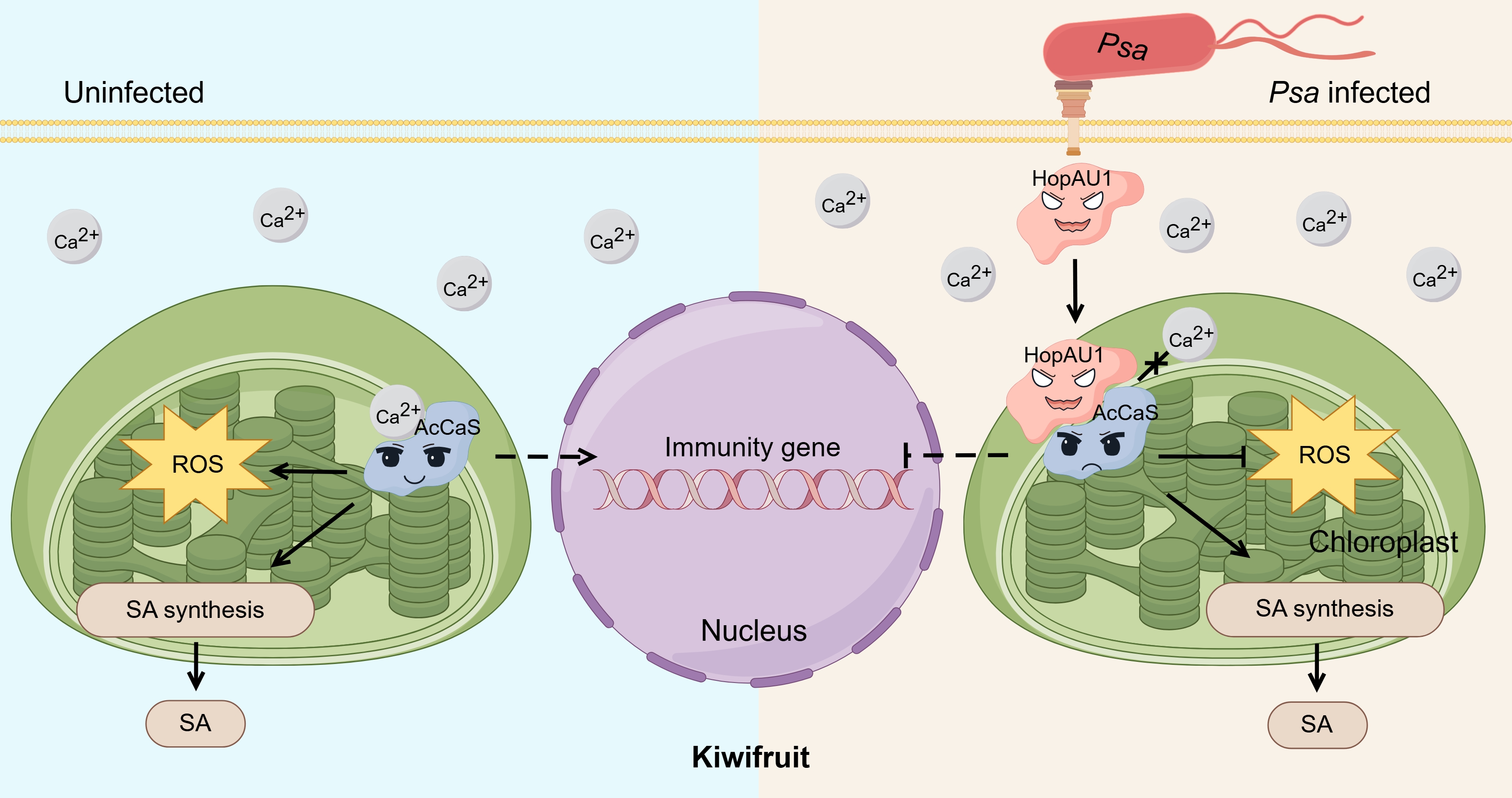 我院果树病害致灾机理及综合防控团队在猕猴桃叶绿体免疫调控机制研究中取得...